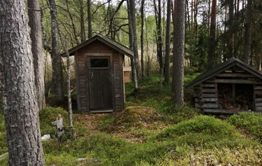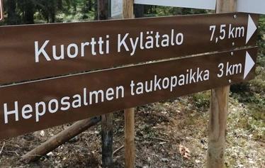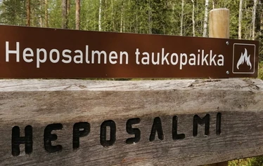 Heposalmen taukopaikalla voit olosuhteiden salliessa sytyttää nuotion, johon puut saa paikalla olevasta puukatoksesta.
