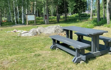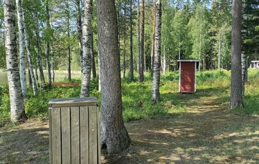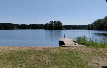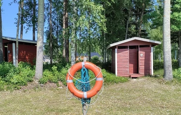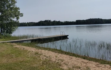 Matalarantainen uimaranta sopii myös pienille lapsille, kaksi laituria, pukukopit ja käymälä.